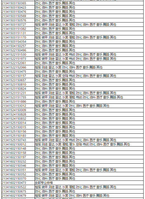 2021年军队院校招生面试体检合格人员名单